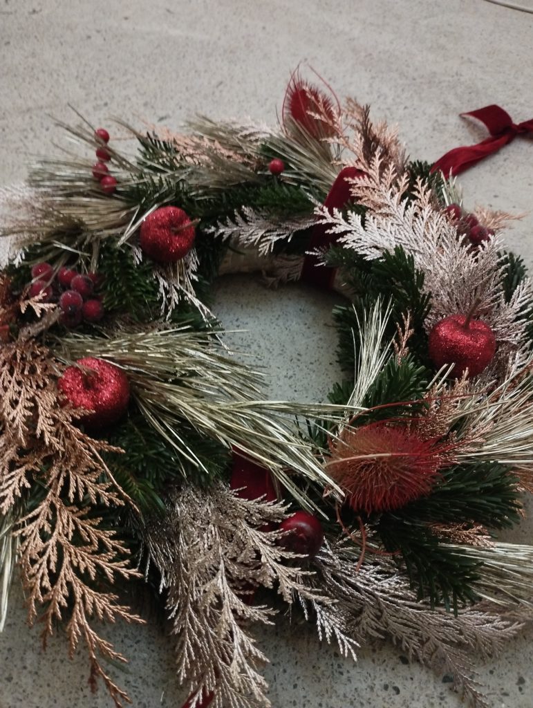 A accrocher sur votre porte ou dans votre intérieur, ou encore tout simplement posée sur votre table avec une bougie au centre, cette couronne durera sur le temps même après les fêtes !